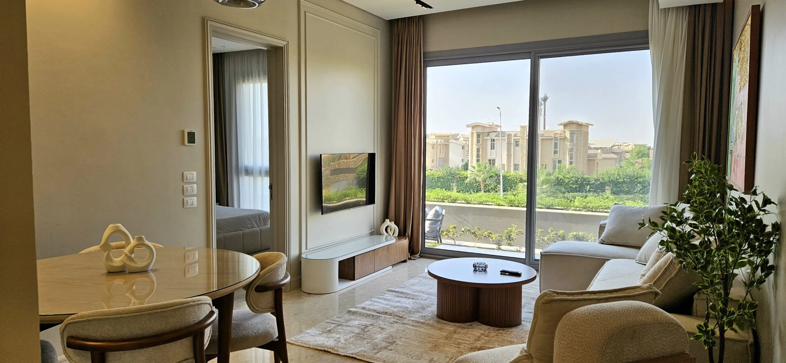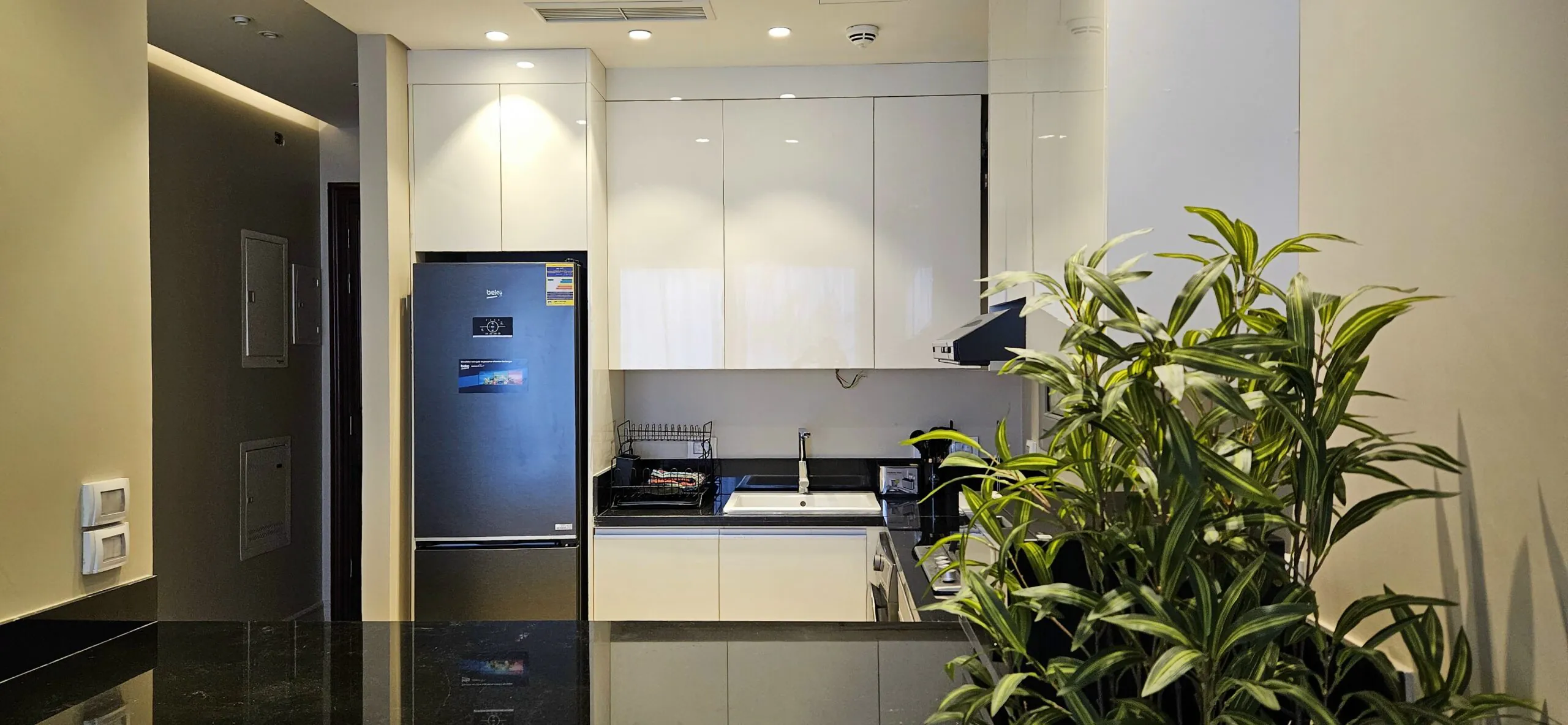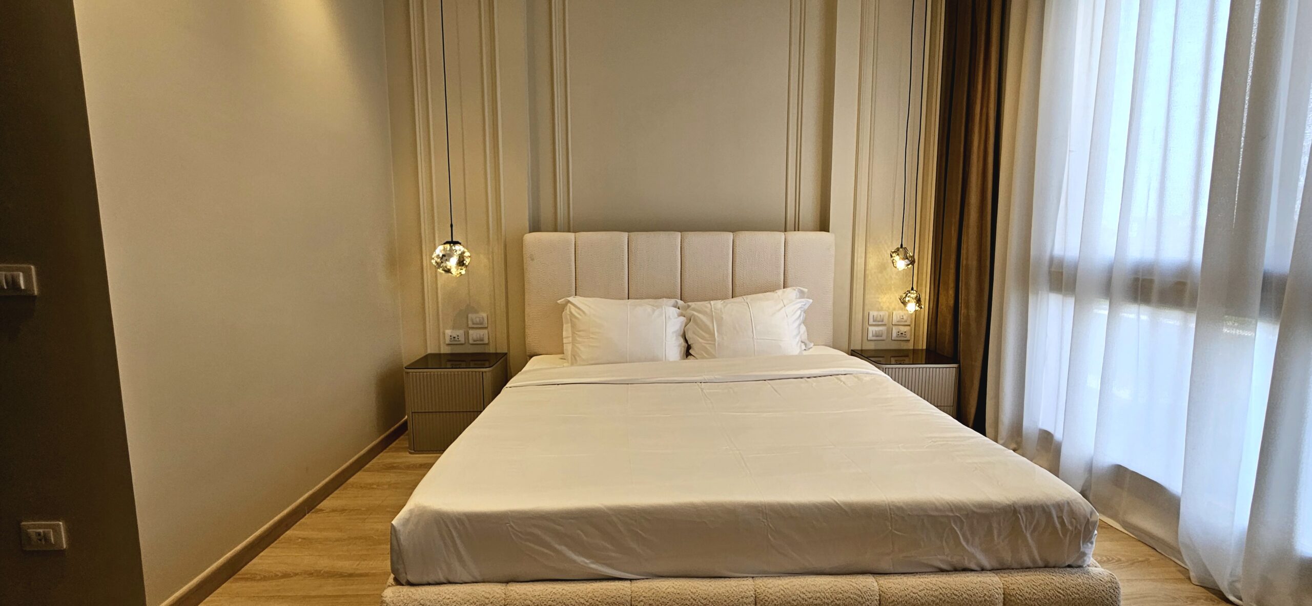 Experience modern comfort in this stylish 1-bedroom apartment featuring elegant décor, floor-to-ceiling windows, and a private garden view. Relax in the cozy living area with smart TV, enjoy meals at the chic dining space, or unwind in the serene bedroom with plush bedding. Perfectly designed for both short and long stays, this home offers natural light, high-end finishes, and a calm atmosphere—ideal for business travelers, couples, or solo guests seeking a premium stay.