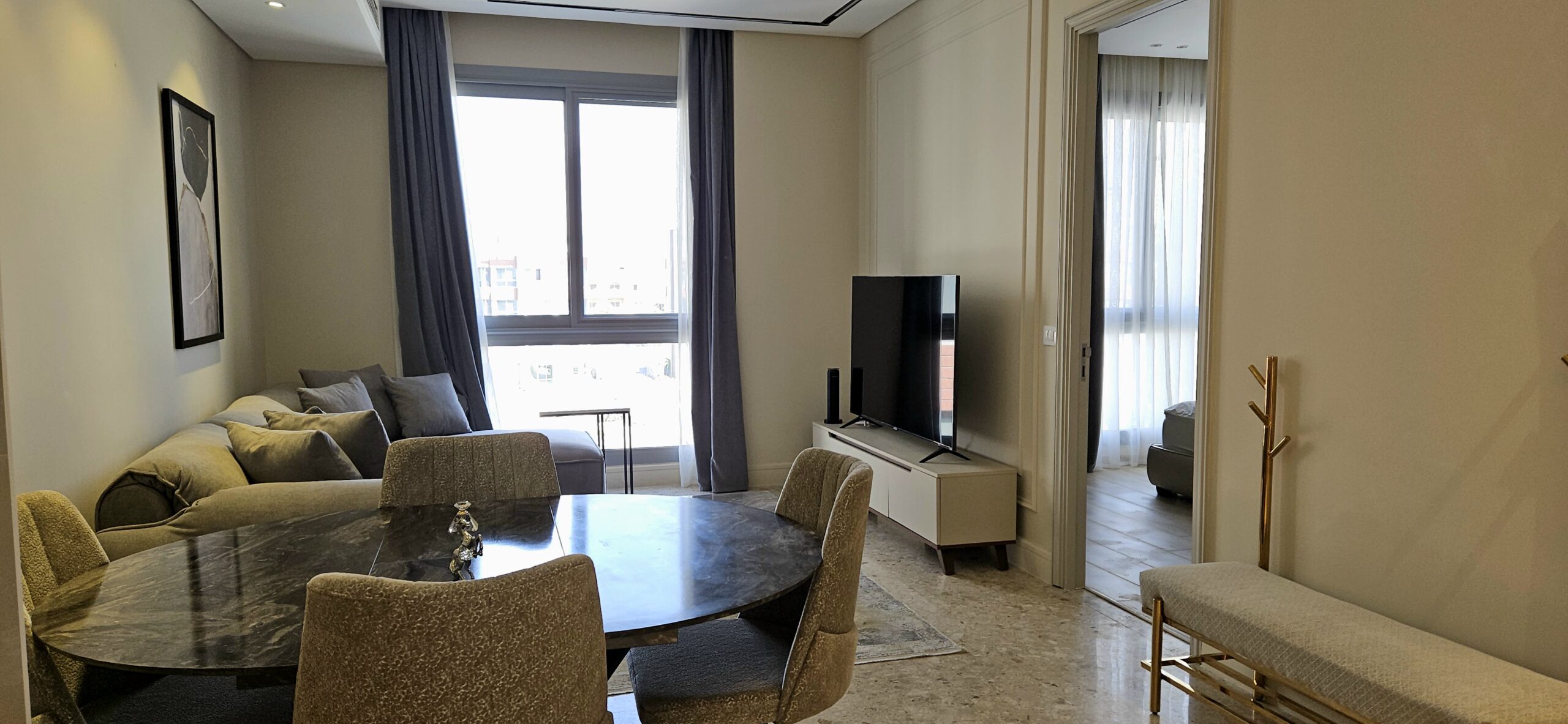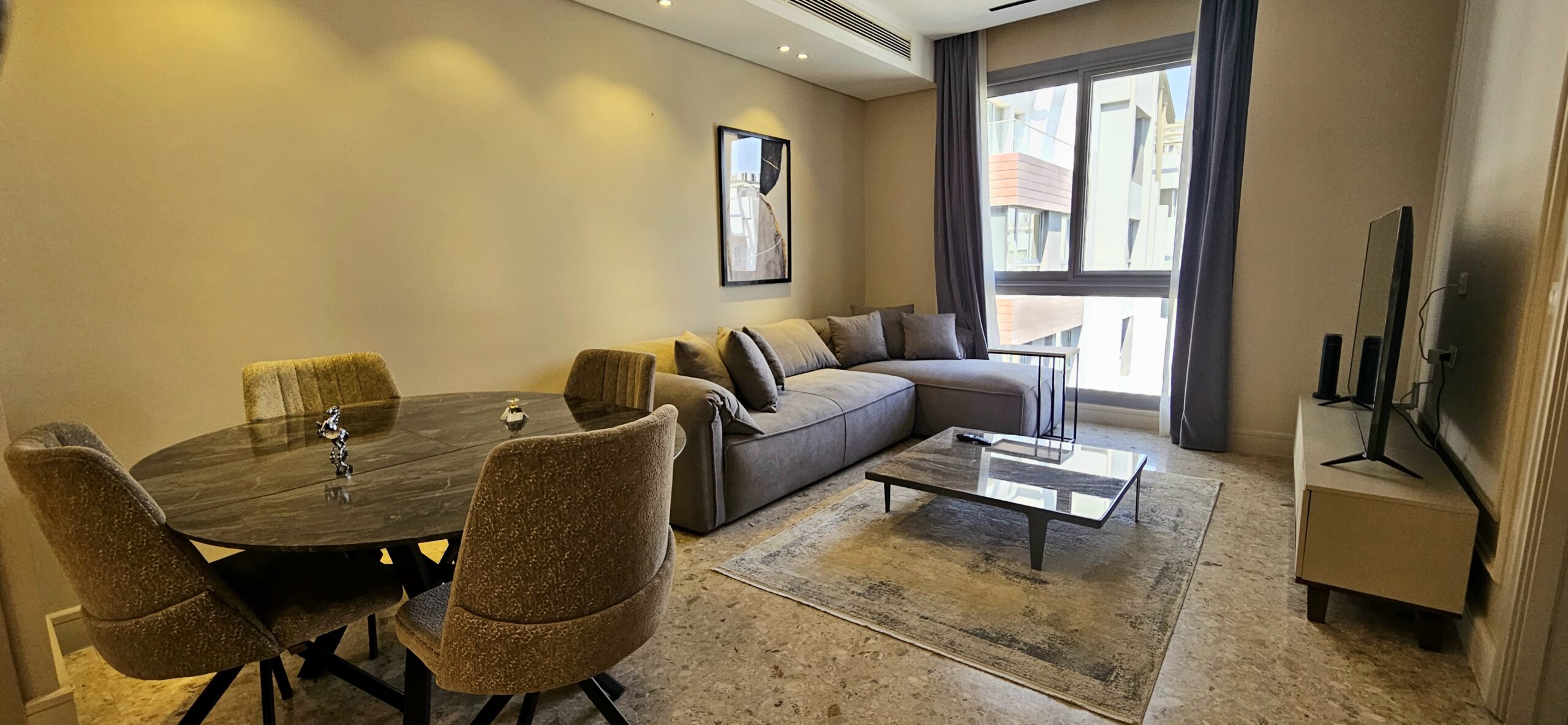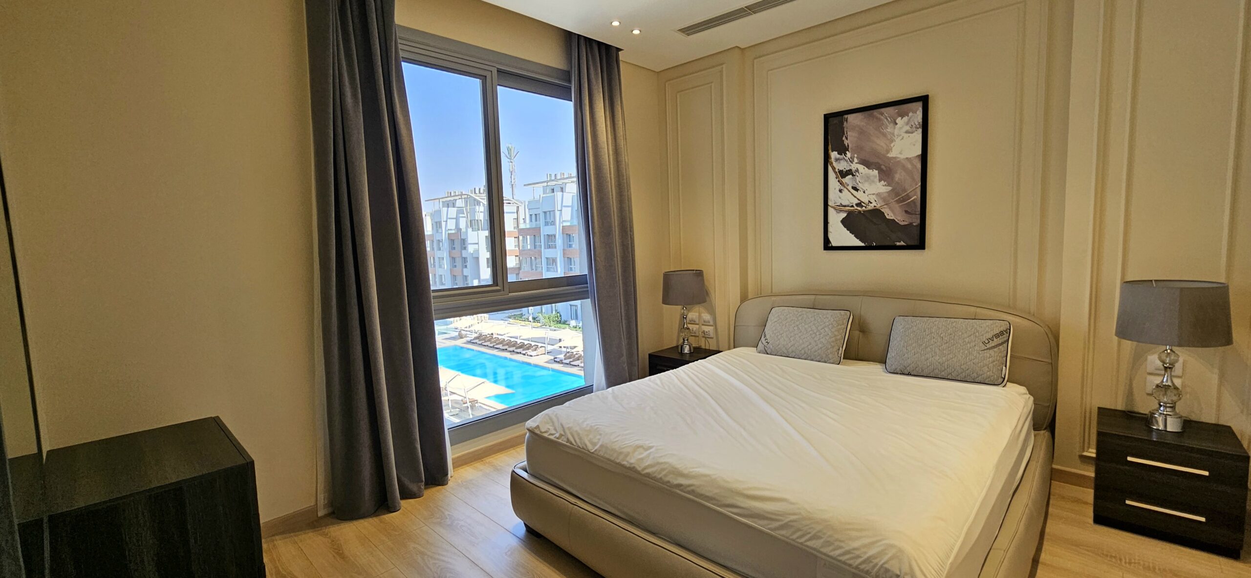 Stay in style at the luxurious JW Marriott Residences. This modern 1-bedroom apartment features elegant décor, a fully equipped kitchen, and stunning pool views. Enjoy access to exclusive amenities including a pool, gym, room service and 24/7 security. Perfectly located in New Cairo, close to dining, shopping, and entertainment, it offers the comfort of home with the luxury of hotel living — ideal for both business and leisure stays.